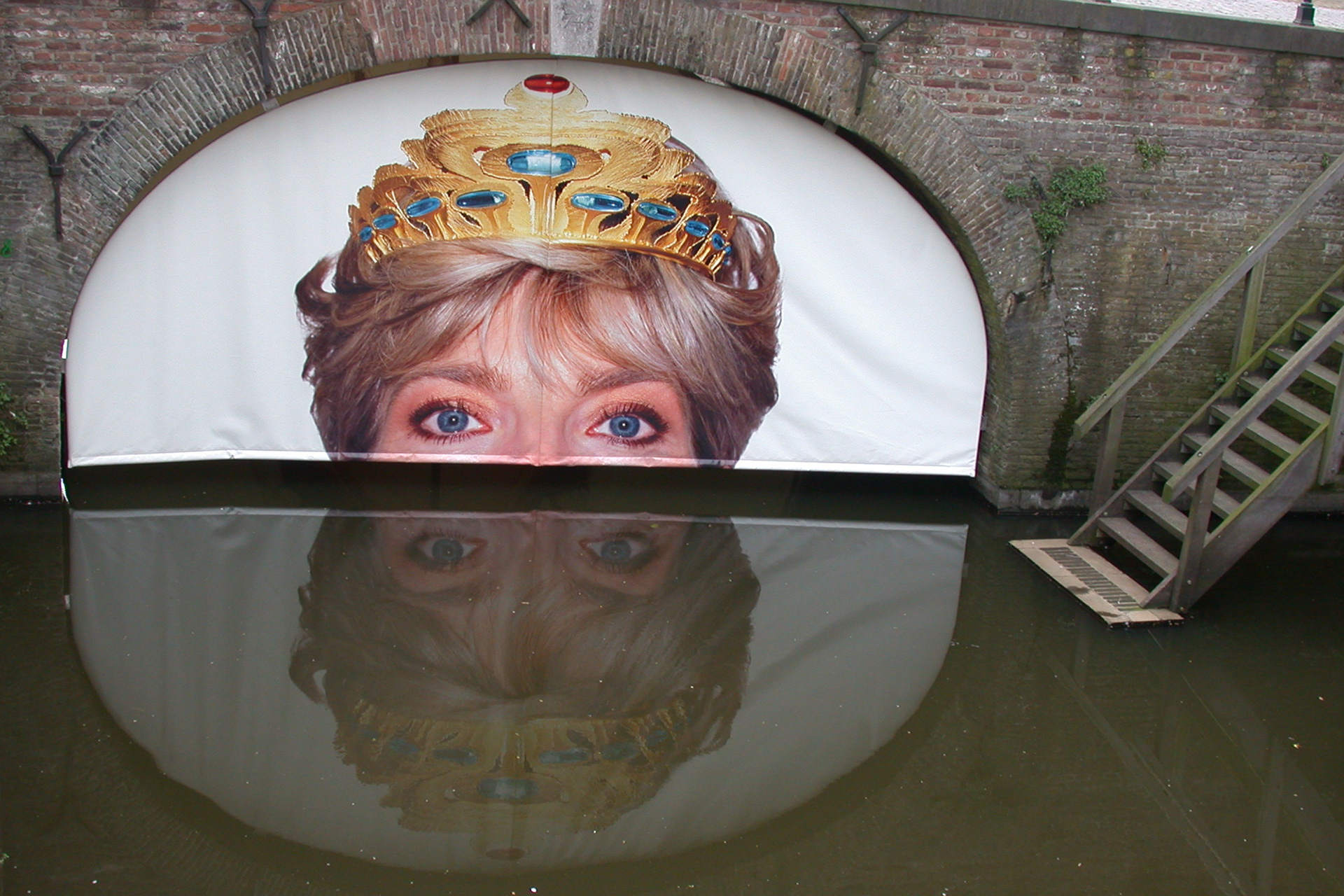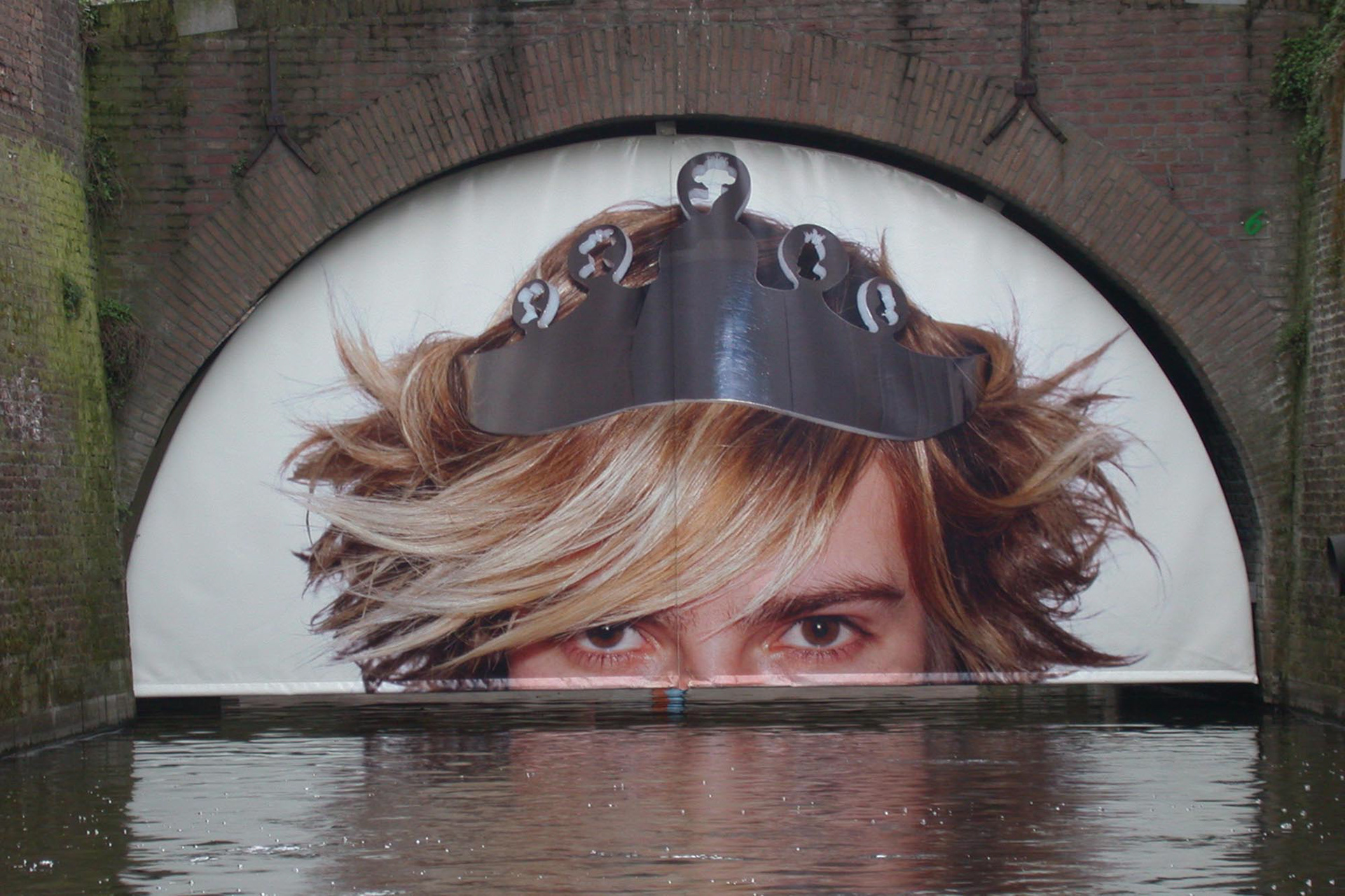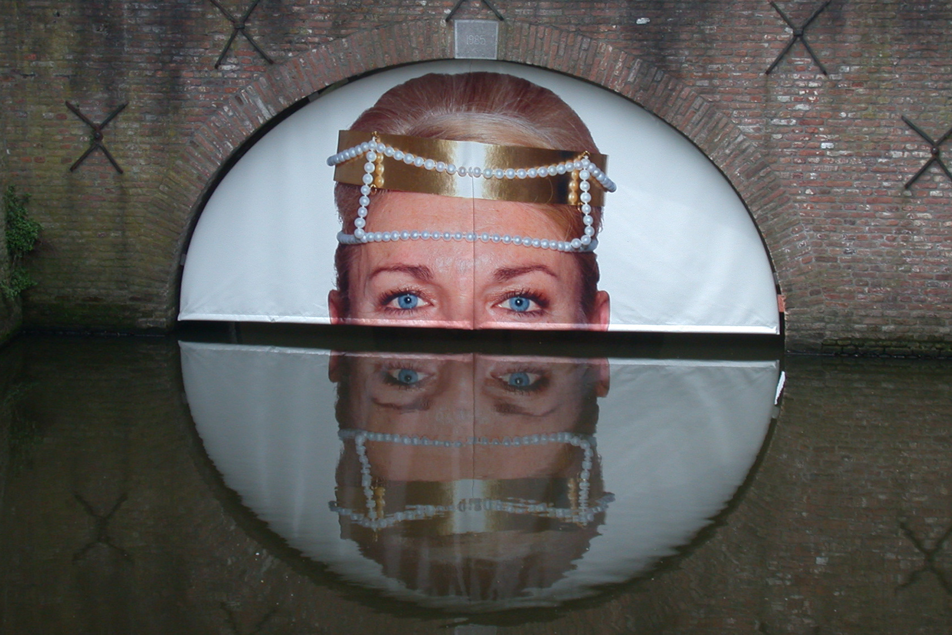 Het Kruithuis (a museum with a focus on contemporary jewellery) set a competition for 20 Dutch jewellery designers to create a winning design for a tiara for Princess Maxima. studio VOLLAERSZWART was commissioned to design an exhibition sowcasing the designs on the Dieze canal in Den Bosch. The 20 tiara designs were photographed and presented under the Dieze’s bridges. Exhibition visitors were taken on a boat trip around the city to see the photos. The actual tiaras were exhibited in the Museum