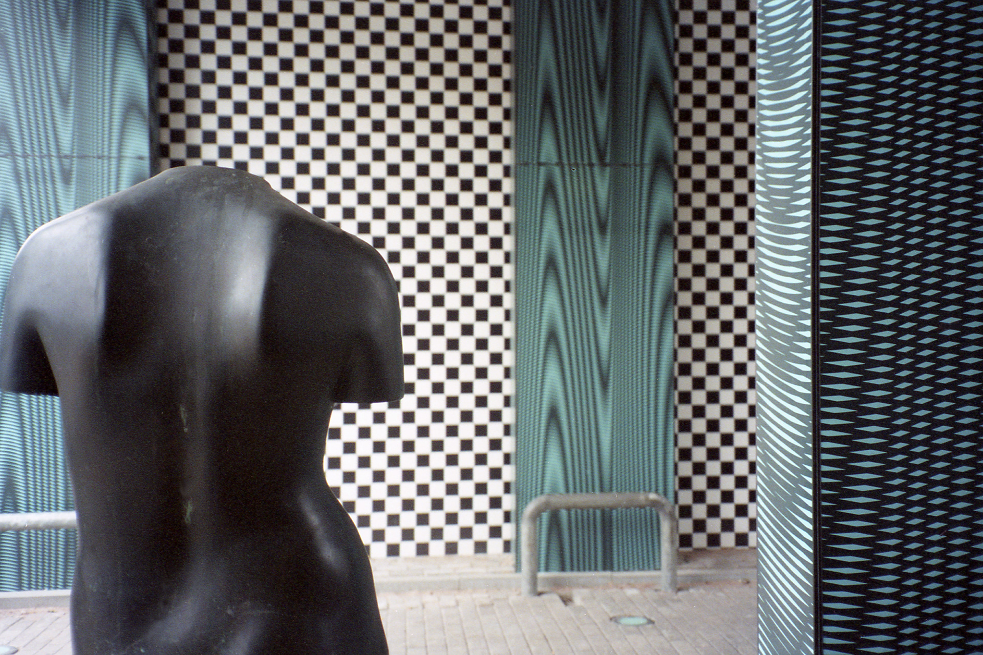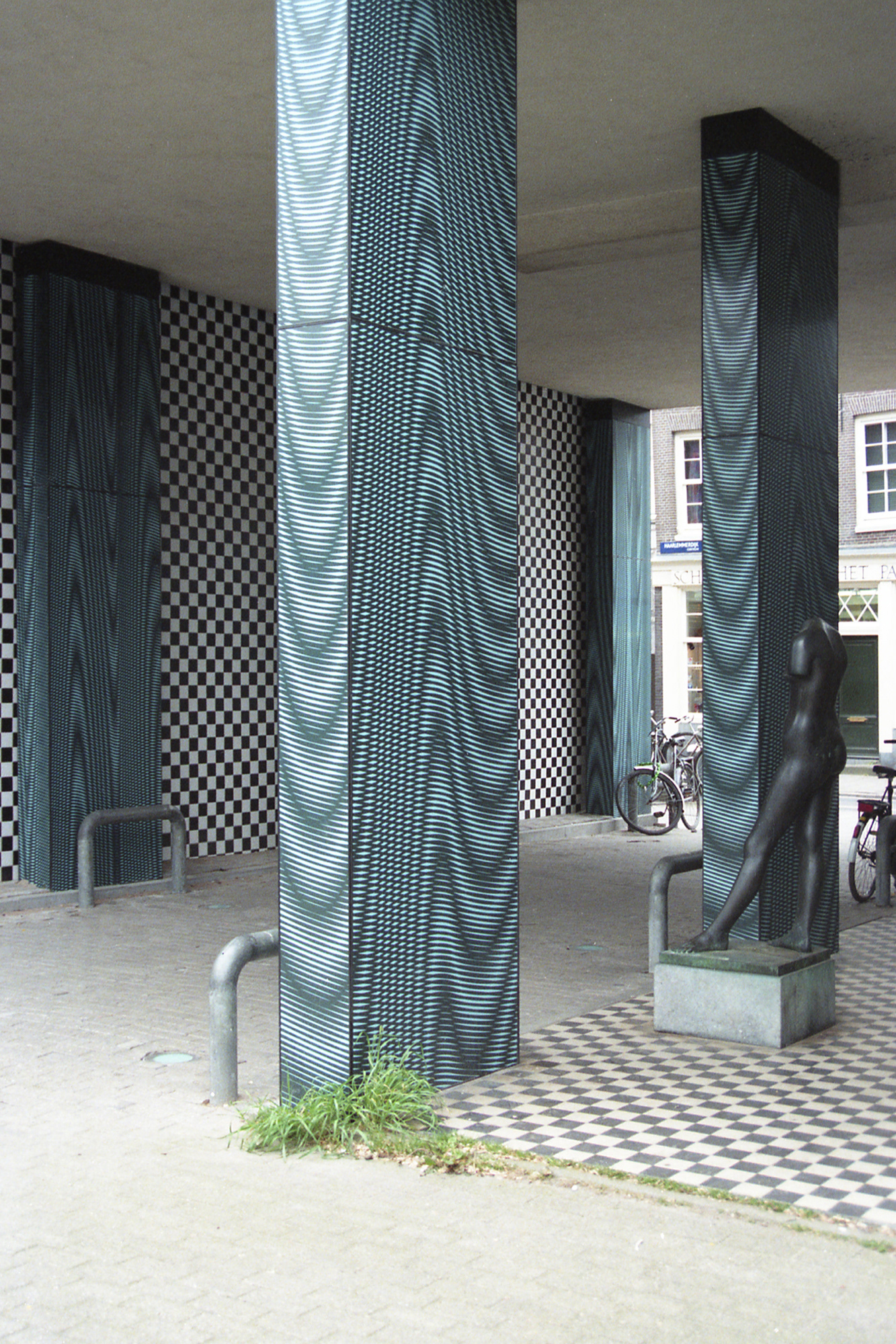 Columns are lined with a moiré pattern on enamelled panels.